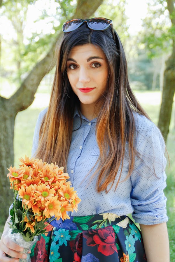 Sin embargo, por desgracia, nunca me canso de ello. Podrá ser repetitivo pero un buen print floral siempre será mi primera elección, sobre todo en este tiempo en el que apetece llevar prendas más frescas y colores más cálidos. No soy innovadora en este sentido y os voy a enseñar una falda de flores, eso es así.