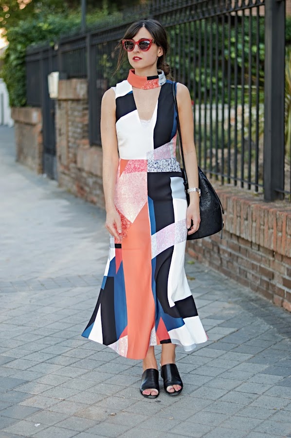 Vestido: BNKR / Bolso: Adolfo Domínguez/ Mules: Uterqüe / Gafas: Mango