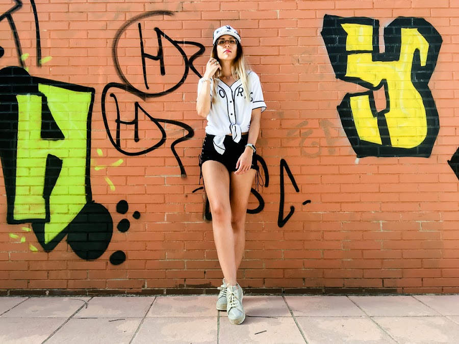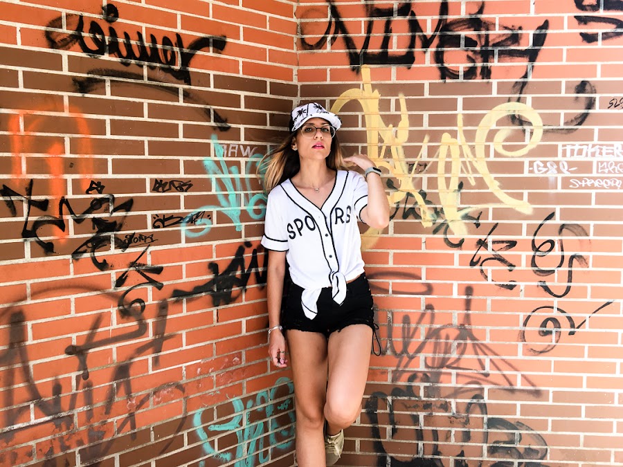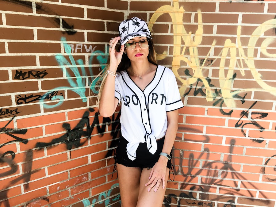 Yo acabo mi lunes como siempre, súper cansada pero con un nuevo post. Esta vez, tiene un toque sporty, con una camiseta de estilo beisbolero en blanco y negro con letras en la parte delantera y en la espalda.