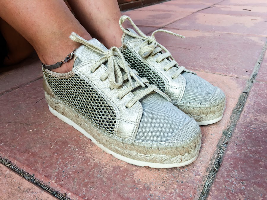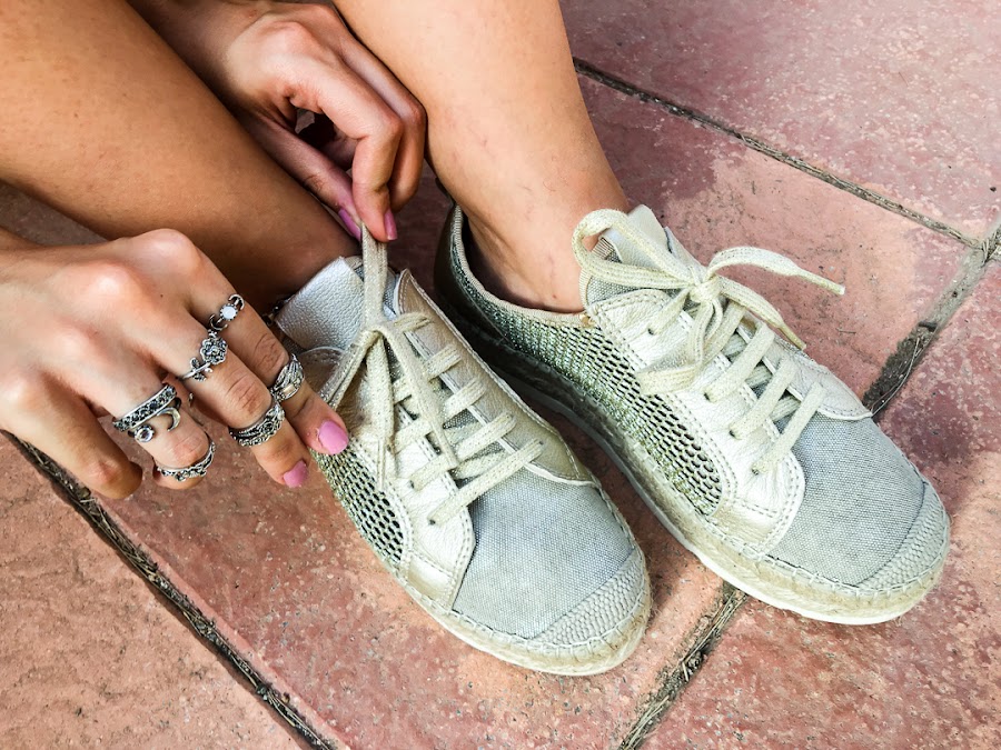 I have combined it with black shorts rippe, closed by side cords that gives a super sexy touch, which by the way, are super comfortable as they are elastic and tighten nothing, esparto slippers, my print cap Tropical also in black and white and as complements, I carry my new set of rings, which are all precious!