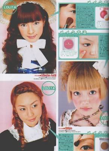 En esta sección pondre algunas imagenes de lolitas con diferentes maquillajes. Algunas imagenes tendran explicaciones en japones, ayudare explicando como va el maquillaje y que se esta aplicando( no sere una experta pero xD me maquillo). A la vez, tomare en cuenta el peinado de las modelos en las imagenes para que vayan tomando sus propias ideas de como peinarse.