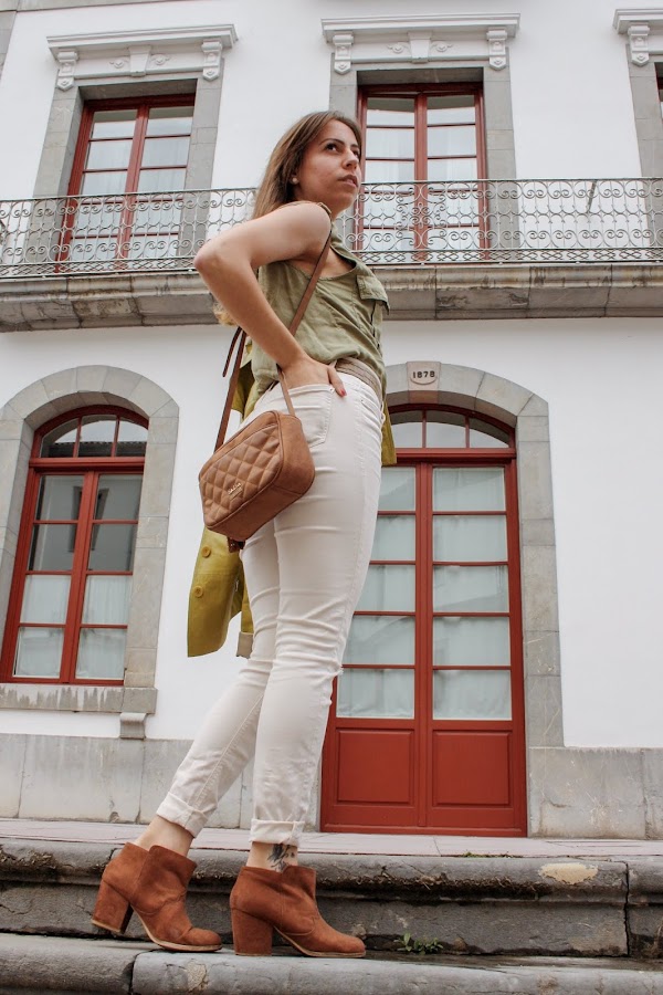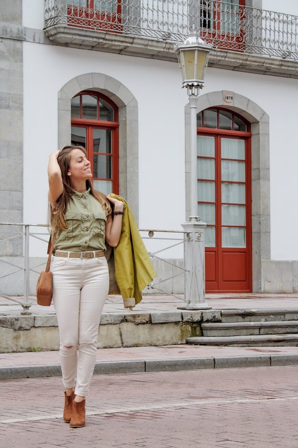 La semana continúa y me niego a quedarme rezagada, así que muy atenta a Instagram. Probablemente ahora mismo esté compartiendo contigo una espectacular tarde en uno de mis restaurantes favoritos de mi adorada ciudad. Mientras tanto, te dejo disfrutando de la propuesta de moda para esta semana. Me apunto a la tendencia militar de una manera sutil y elegante, con esta camisa en tono verde caqui ¿Qué te parece?