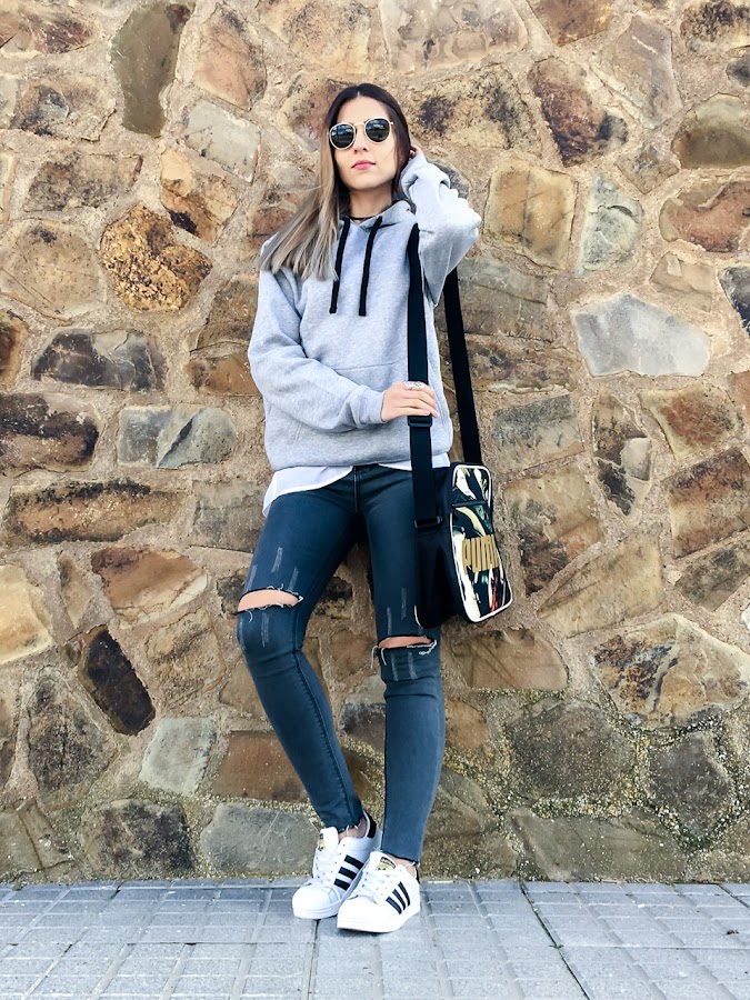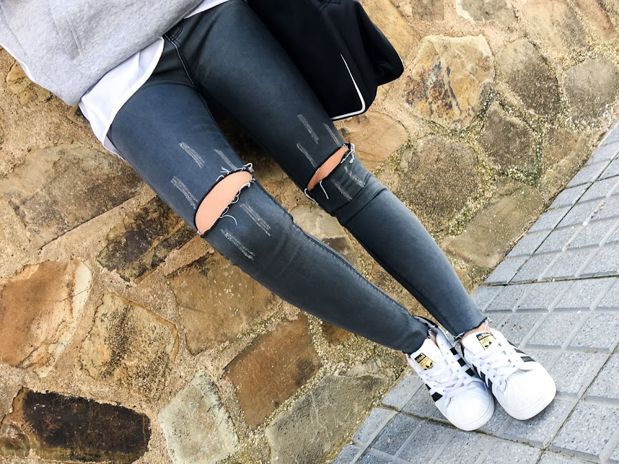 I have combined it with a white shirt underneath, my ripped gray jeans and my adidas superstar!