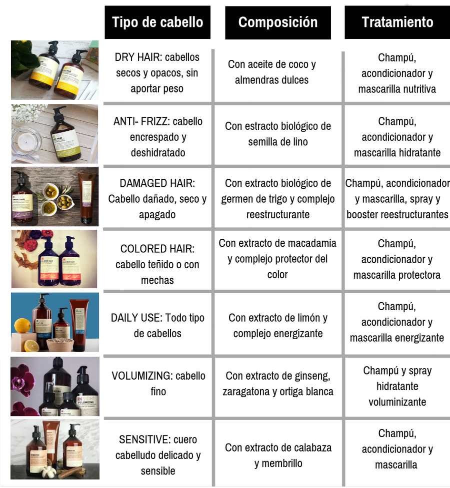 - Existen opciones para todo tipo de cabellos: seco y opaco, teñido, encrespado y deshidratado, frágil y apagado, graso, delicado y sensible e, incluso, para la caída del cabello… Aquí vemos algunos de ellos: