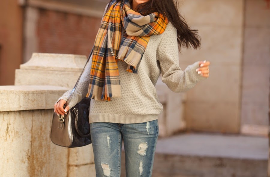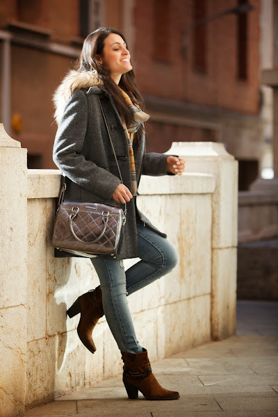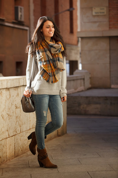 Seguimos con la bufanda de cuadros. Iba en busca de una y al fin he encontrado varias a las que no me he podido resistir. Hoy os presento esta en mostaza, beige y azul, de PIECES. Me encanta y creo que queda genial con este abrigo gris de MINIPREUS.