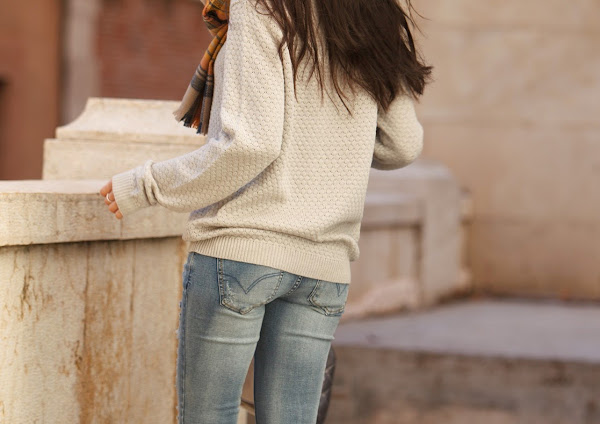 Y por último y como no! Un jersey, unos vaqueritos y lista! Esta vez he optado por un vaquero claro efecto desgastado y un jersey en gris un par de tallas más grande para que me vaya bien ancho. Ambas cosas son de VILA Clothes (Mora Botigues).