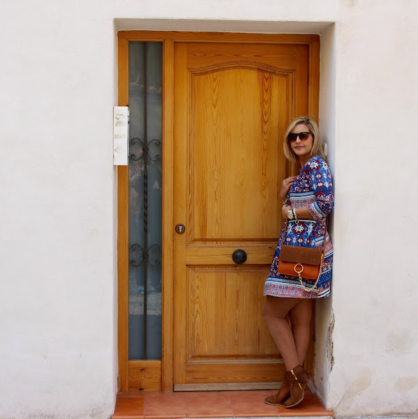 The outfit that I show you today, I wore it in the celebration of the birthday of my father-in-law. When I saw this dress in the website of Qué guapa, I didnt think twice and I bought it. I wore it with my boots with fringes, my bag similar to Faye of Chloe and a black biker. A feminine outfit that its perfect for spring.