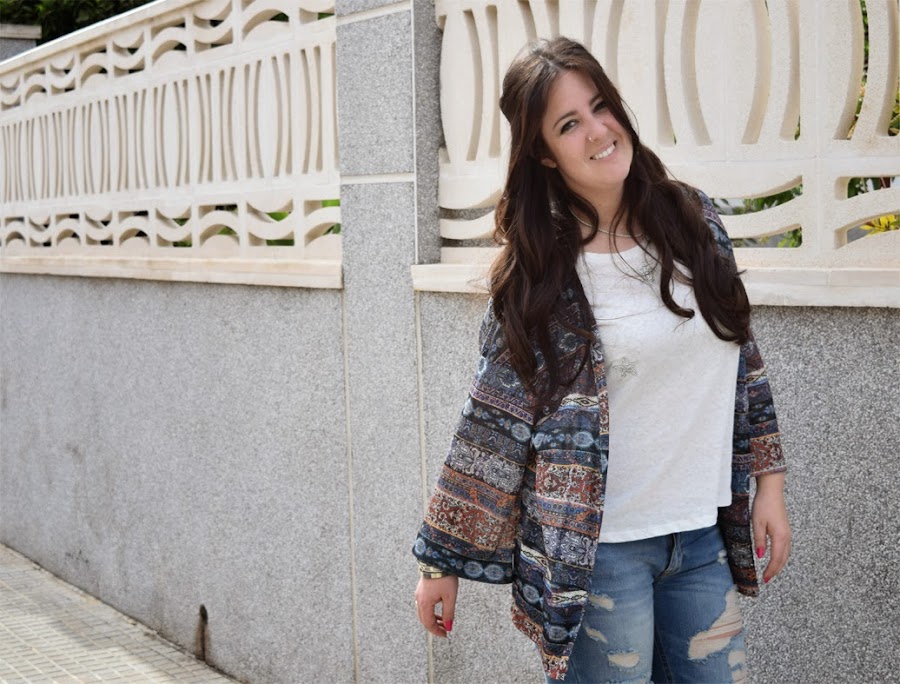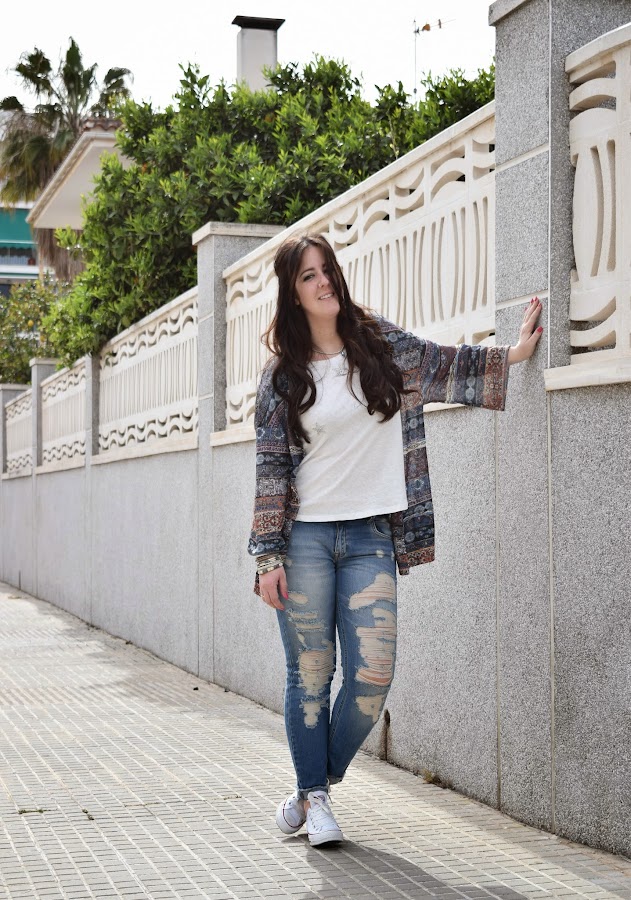 Good morning!! Today I will show you a more spring look. Finally I could use my new kimono of sales, I bought it by chance, it costed 3 or 4??? so I took it, haha. Moreover, the kimonos like blazer can brigten a look like this with jeans and basic tee, don"t you think? On the other hand, I have this converse since years but I don"t ususally use because I don"t know why strange reason they do me terrible damage... well, I hope you like it and HAPPY FRIDAAAAYYYY!!!