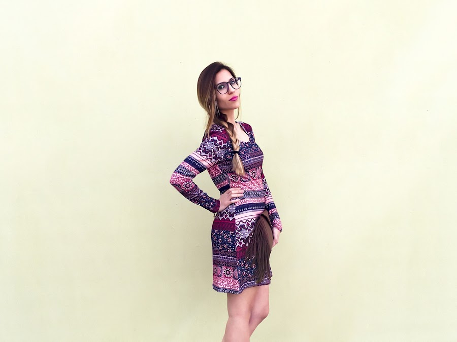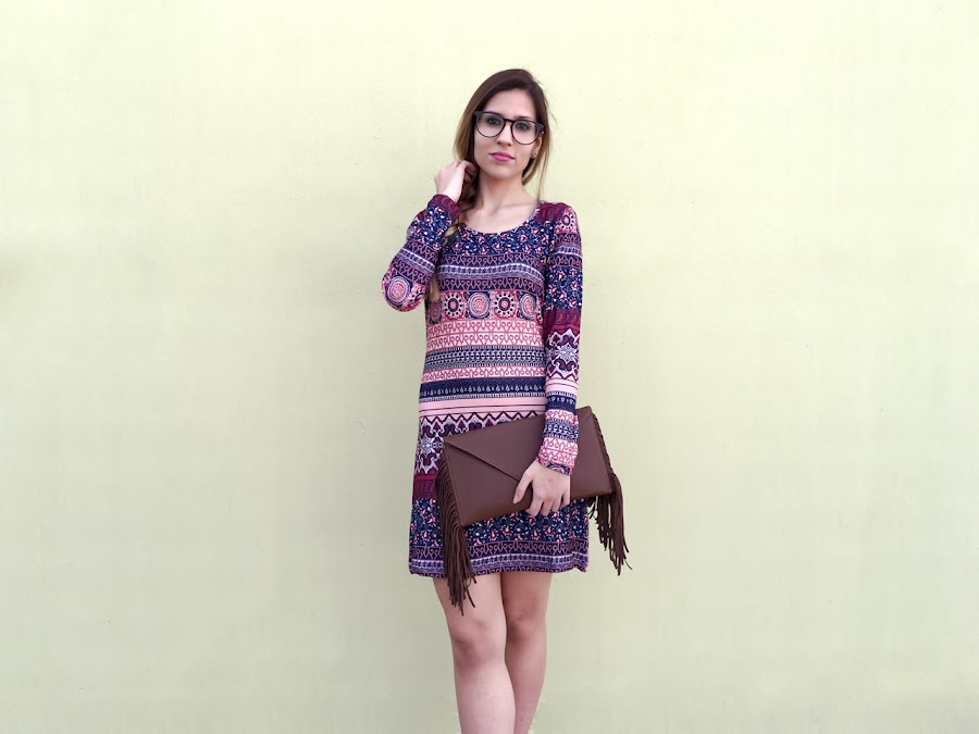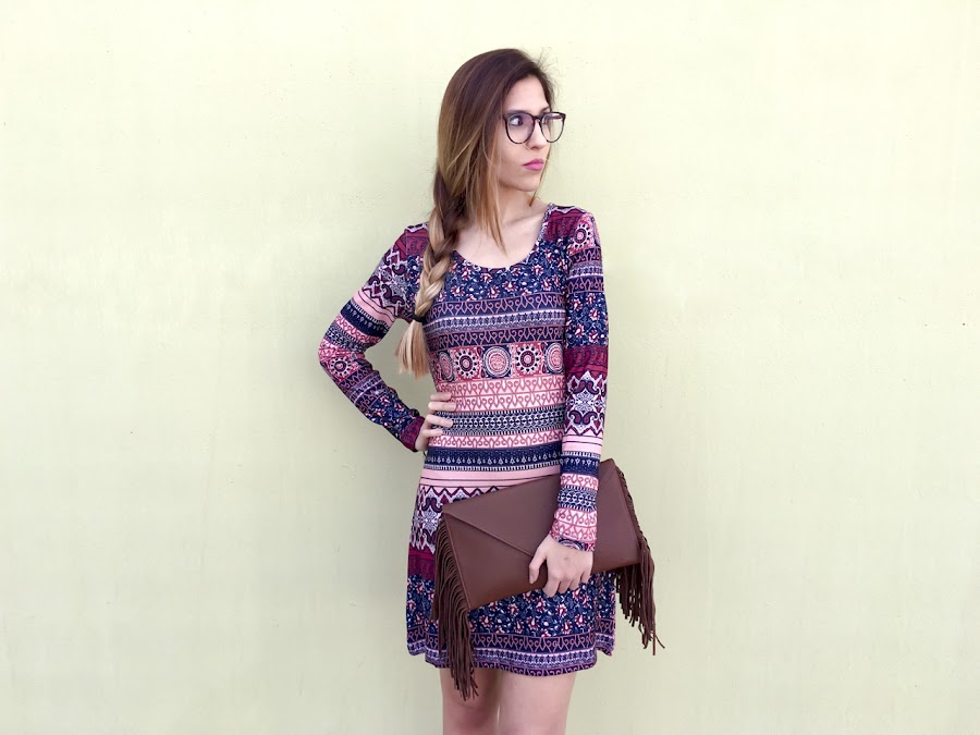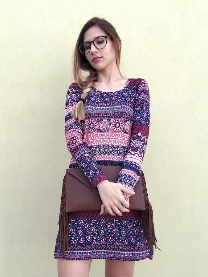 La primavera ya llegó!! Y esta temporada se vuelve a llevar el estilo hippy, boho y estampados étnicos. Ya lo vimos la primavera pasada, y un año más, este estilo se queda con nosotros! A mi me encanta, con sus estampados tan alegres, vivos y originales! Así es el vestido que os enseño en mi outfit de hoy. Me encanta como queda, la tela es espectacular y su estampado me encanta. Os enseño la cajita en la que Hippyssidy me lo enviaron, porque me pareció preciosa! Lo he combinado con unos botines y un bolso de flecos.