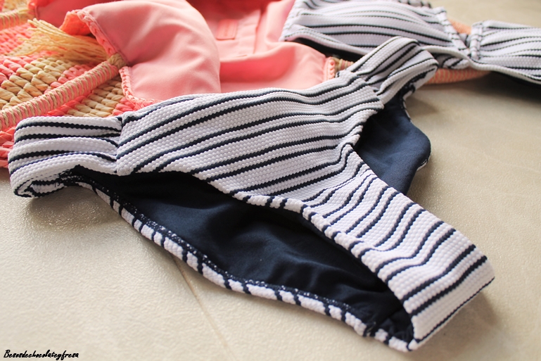 Además aprovecho para enseñaros otros dos básicos para mis días de piscineo, como esta bolsa en rosa y beige de Fifty Factory de la colección de Womens Secret con forro interior y bolsillo, así como mi bikini navy con escote bandeau de Polinesia.