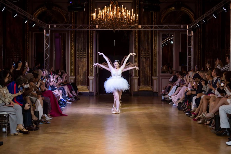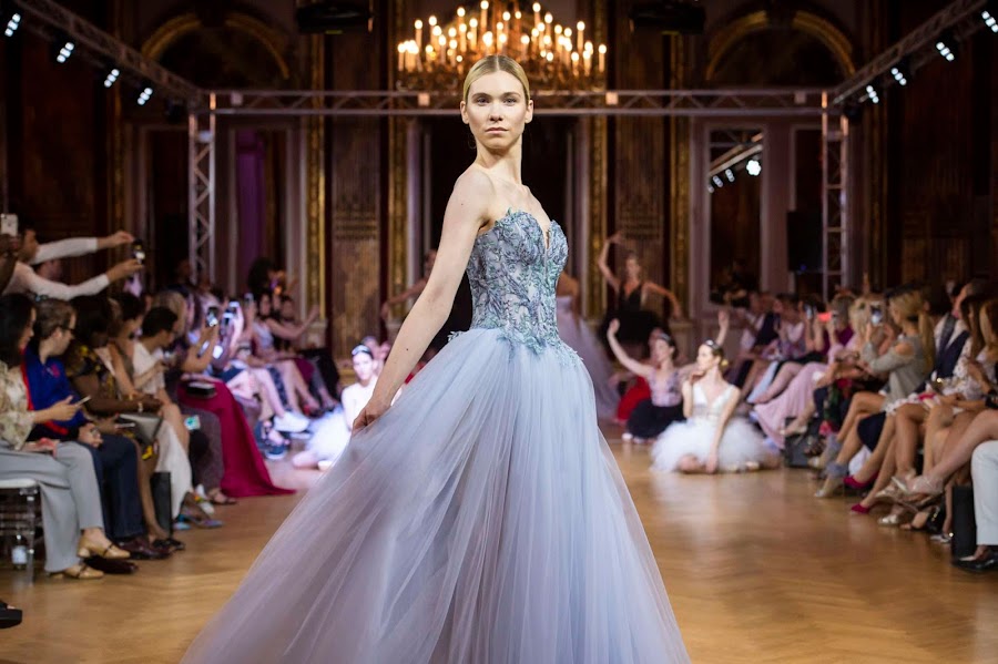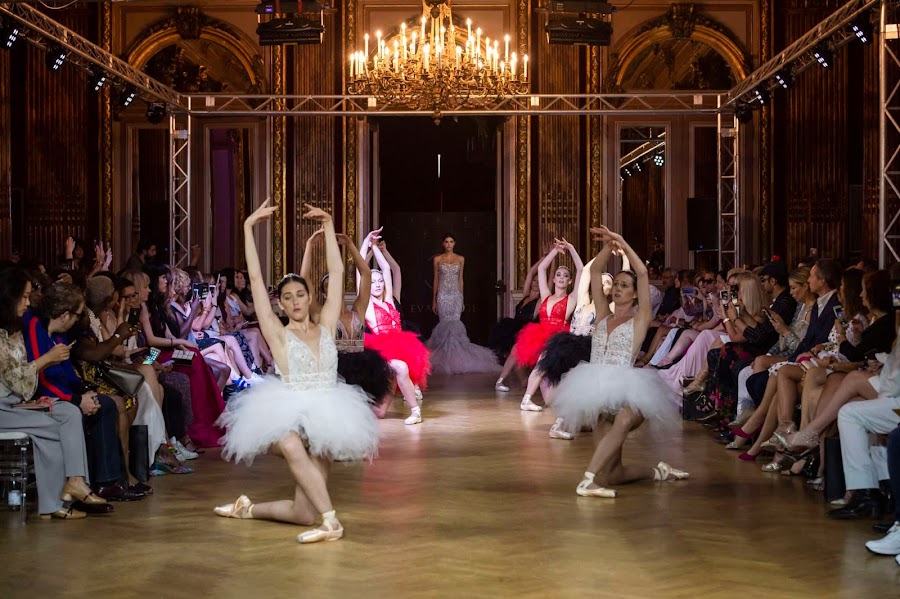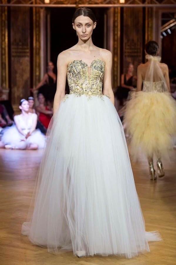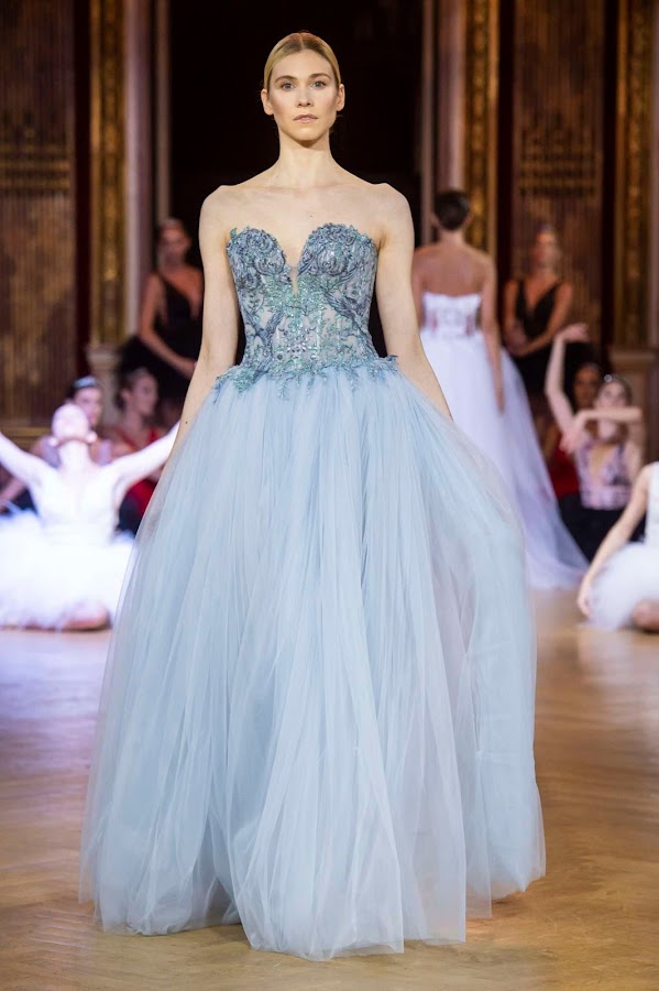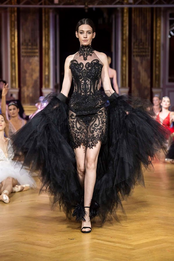 ¡Y os sigo mostrando colaboraciones de la moda con la danza que tanto me encantan!, en esta ocasión en la actual París Fashion Haute Couture. La diseñadora Polaca Eva Minge, una de las diseñadoras mas importantes de la Europa del Este, presentó su colección, inspirada en el ballet el lago de los cisnes. Para la presentación, unas bailarinas ataviadas con los trajes de la diseñadora en los colores de la colección, hicieron una performance de ballet y acompañaron con sus movimientos, sentadas a los lados de la pasarela, a las modelos.
