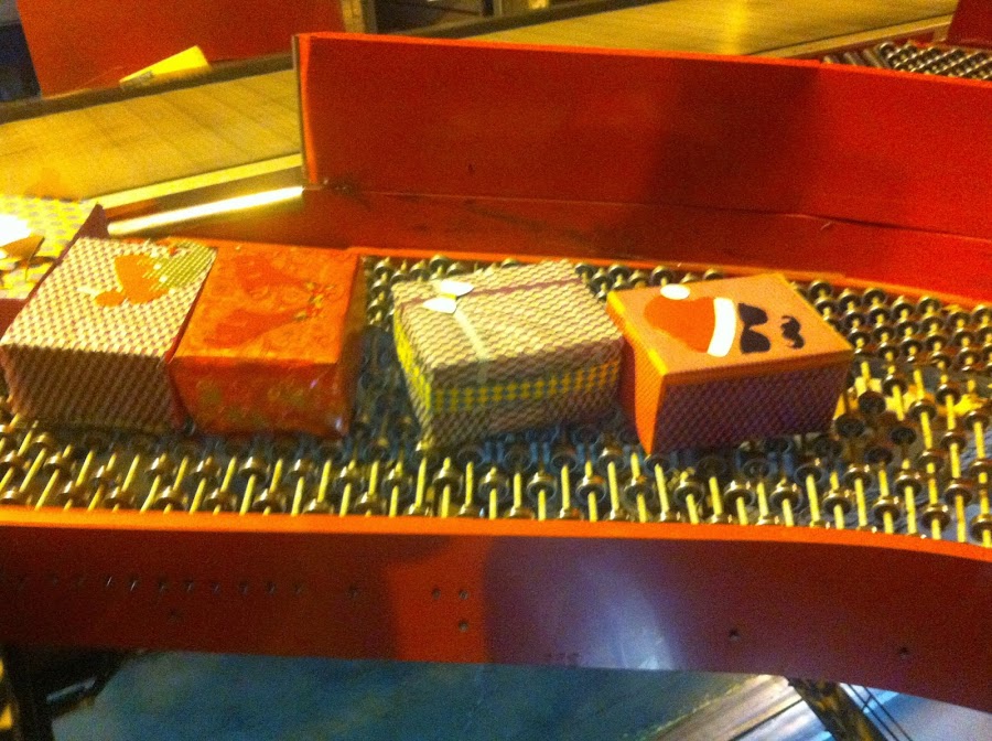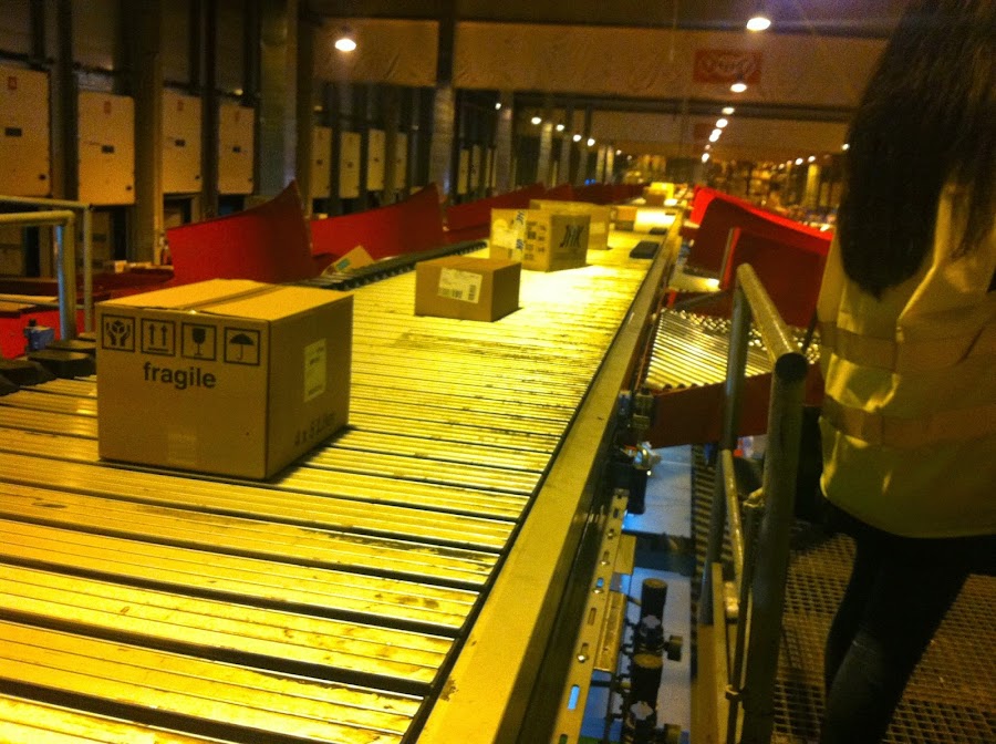 Nos enseñaron una cinta que además de pasar nuestros paquetes que anteriormente decoremos en las oficinas de packlink, pasaban todos los artículos que llegaban de diferentes localidades para ser llevados a otro lugar. La cinta tenía una especie de "toboganes" que cada uno almacenaban los paquetes de diferentes regiones de España.