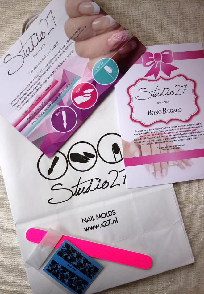 Estuvimos en Studio 27, donde sus chicas tan agradables, nos mostraron lo nuevo en moldes para uñas de gel. Nos obsequiaron una lima, unas pegatinas y un bono de regalo para un próximo evento que esta marca llevará a cabo.