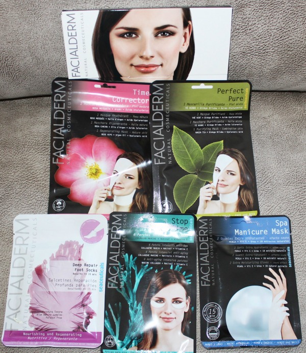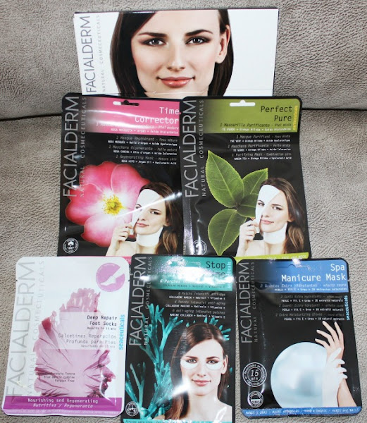 FacialDerm con sus mascarillas de manos, pies y parches para los ojos, nos obsequiaron con este pack de mascarillas: