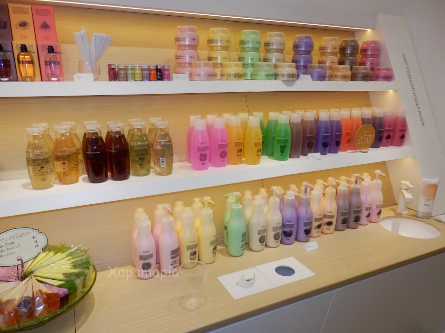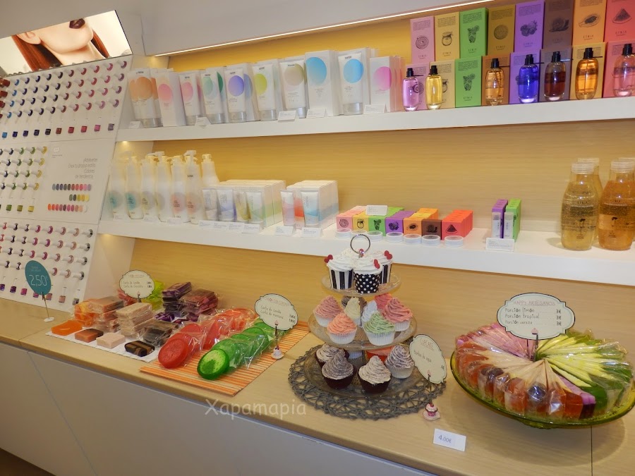 Tienen cortes de jabón y bombas de baño, cortes de jabón tienen de dos tipos, con forma de porción de tarta y los normales de olores variados y con muy buen precio. Las bombas de baño con forma de cup cake son preciosos y para regalar al igual que un set de los geles anteriores con su crema o colonia o bálsamo me parecen ideales.
