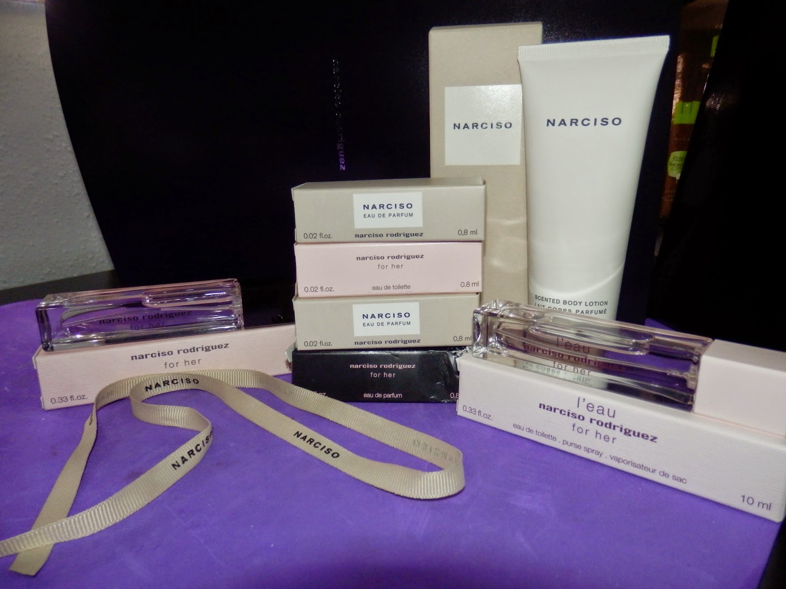 Y ya cuando nos marchábamos nos sorprendieron con una bolsa llena de cosas relacionadas con Narciso Rodriguez que cuando lo vi me quede alucinando ya que no me esperaba para nada estos detalles.