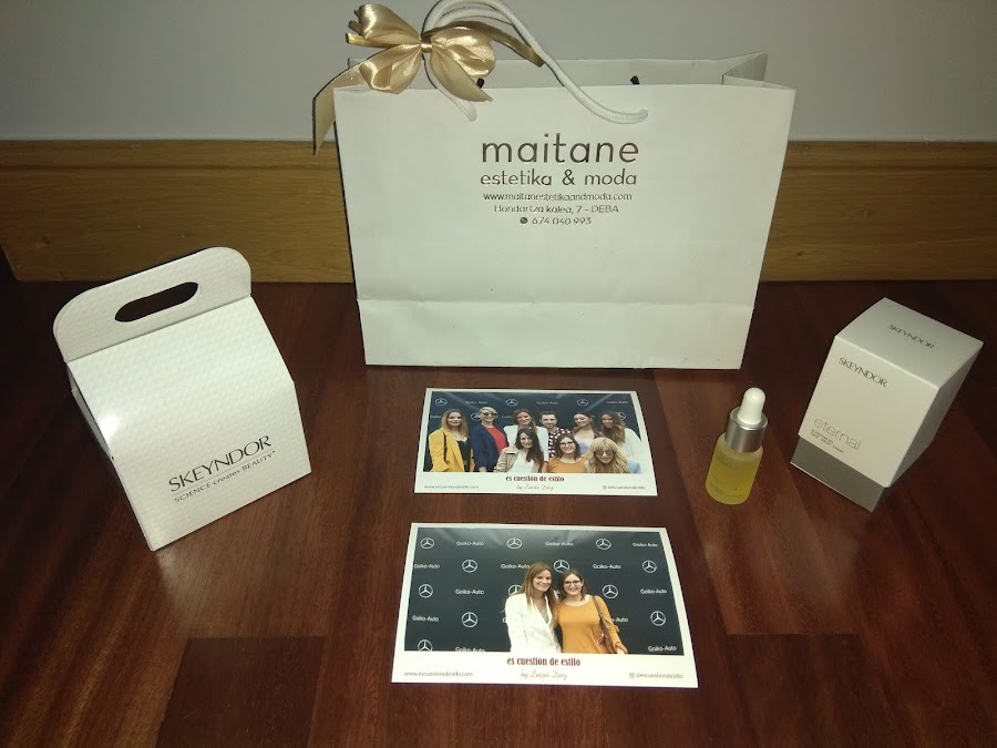Nada más llegar al evento teníamos preparado un photocall que además sacaba fotos instantáneas para que los asistentes pudiéramos llevarnos un recuerdo del evento y además nos recibieron con un cóctel de bienvenida, un gin tonic afrutado. Pero no sólo nos mimaron también nos dieron un detallito en agradecimiento, un aceite facial de skeyndor y unas muestras de la misma marca, Lucía junto con otra de las organizadoras del evento Maitane, de la tienda @maitaneestetikaandmoda muchas gracias.