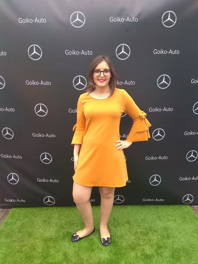 Y por último pero no menos importante os dejo el look elegido para el evento en tono mostaza y bailarinas, cómo ya sabéis sufrí una caída el año pasado y todavía no estoy nada recuperada así que opte por la comodidad que ofrecen este tipo de calzado. Para quien no se haya fijado en las mangas del vestido tiene varios volantes y un lazo coronando, además las mangas son tres cuartos así que es perfecto para entretiempo puesto que parece que el verano aún no se decide a llegar. La verdad aunque lo parezca, no nos pusimos de acuerdo pero eramos tres los que nos decantamos por este color tan de moda este año.
