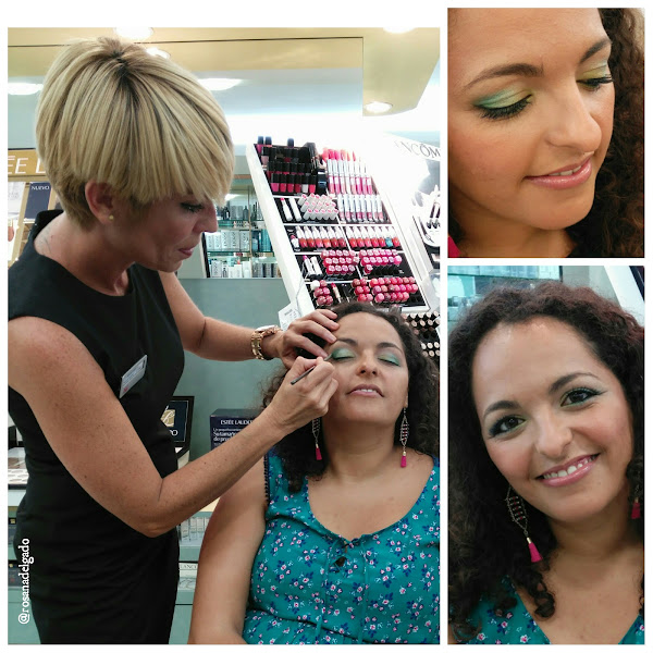Mila, la experta que nos atendió, nos enseñaba los productos siguiendo el orden de aplicación de los mismos y, mientras los probábamos, iba maquillando paso a paso a modo de demostración para ver los resultados (en este caso, Sumaya fue la modelo).
