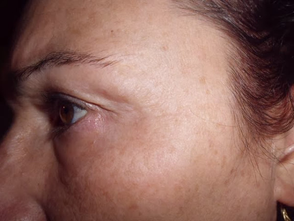 Esta foto es la del antes, fijate como se ve la piel un poco deshidratada, solo un poco debajo del parpado inferior, porque estoy usando una buena crema.