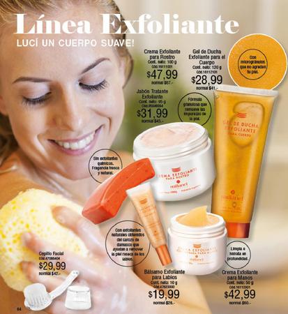 Millanel tienen una línea de exfoliantes bastante completa, para rostro, labios, manos, gel de ducha y un jabón, todos a precios muy accesibles, les dejo una captura de la línea en la revista en curso para que vean los precios y los productos que les comenté.