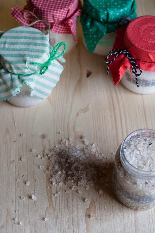 - Sal, aceite de almendras, AE de mandarina y ralladura de mandarina (relajante)