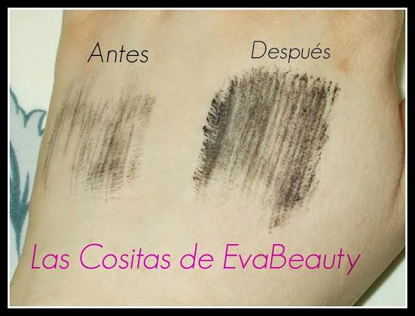 (Swatch antes y después Mixing Solution de KIKO en máscara de pestañas por Las Cositas de EvaBeauty)