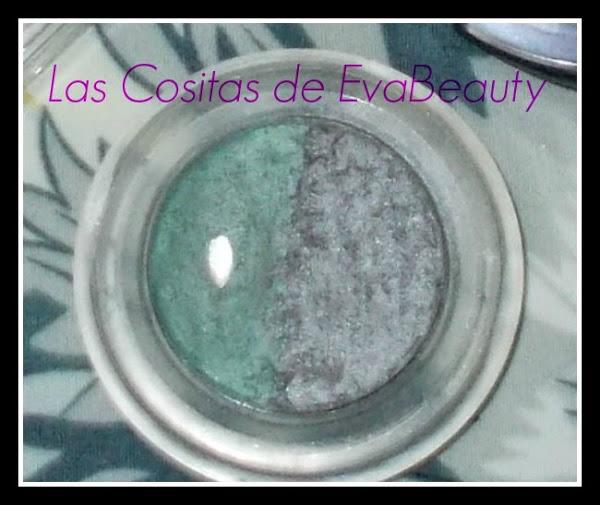 Otra sombra que cogí para experimentar, fué ésta doble de Oriflame, en tonos gris y verde.
