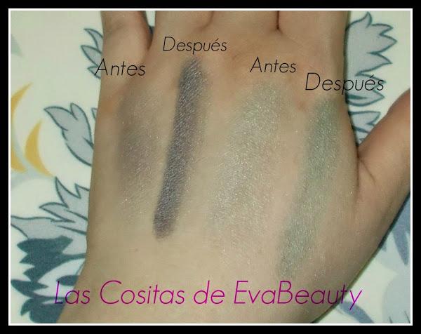 Pasamos a probar el producto, con sombras que tenemos desde hace tiempo y no pigmentan igual, o sombras que no pigmentan mucho desde el principio.