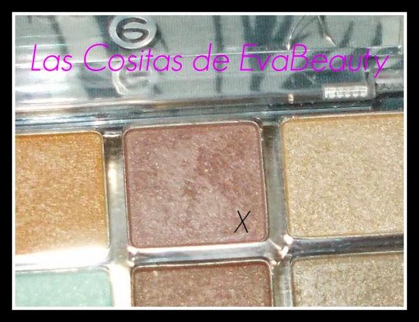 Por último en sombras, escogí ésta paleta comprada recientemente, ya que el tono que véis con la X apenas pigmenta (és la única de la paleta que pigmenta poquito).