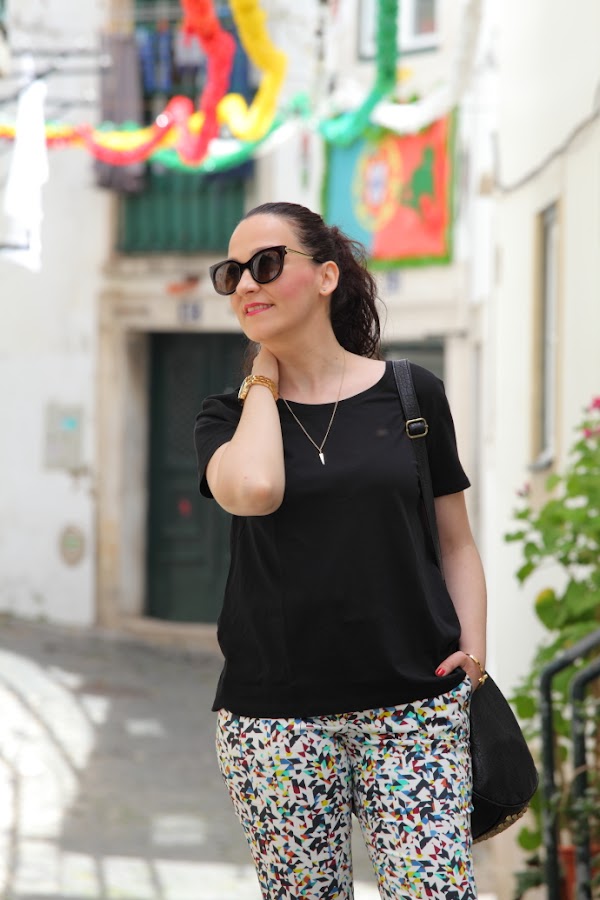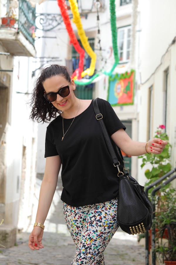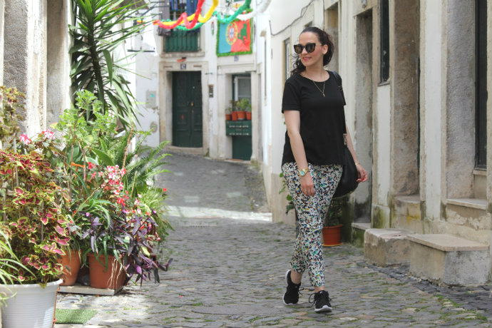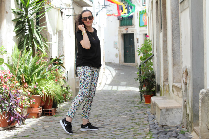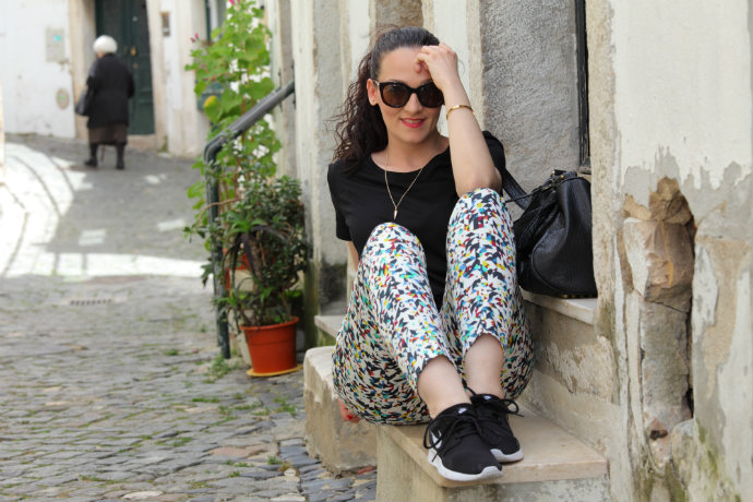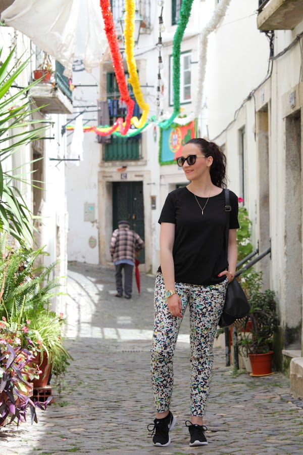 Para ese día me decante por un look con camiseta básica negra, pantalón capri de colores y mis nuevas Nike Kaishi Run. Las tengo igual de este invierno pero con animal print y me resultan tan cómodas que no dudé en comprármelas en negro para ir a Portugal.