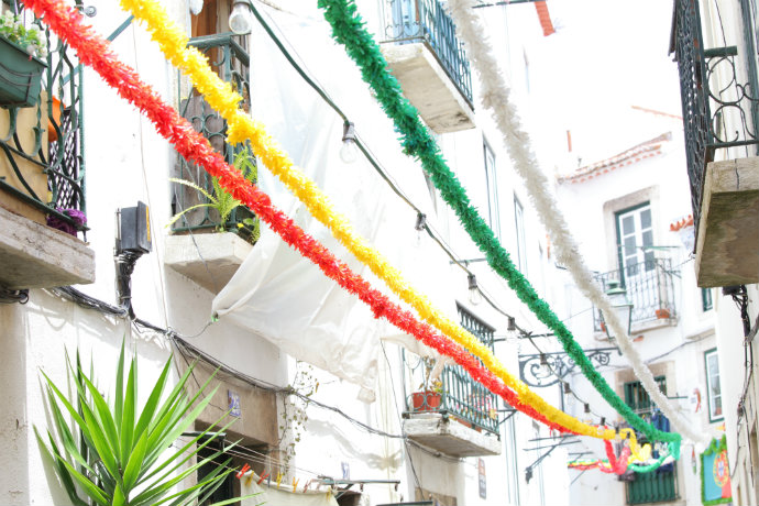 Si de Lisboa tuviera que quedarme con un solo lugar ese sería el barrio de la Alfama, el más antiguo y pintoresco de la ciudad. Formado por calles estrechas y casitas de dos o tres plantas transmite la sensación de encontrarte en un pueblo donde se conoce todo el mundo, es más, nos recordó mucho al Albaicín de Granada. Además, por la cercanía de las fiesta de San Antonio lo estaban decorando con guirnaldas de colores dándole un encanto aun más especial. Allí se se encuentran algunas de las mejores casas de fado y muy buenos restaurantes como el San Antonio de Alfama donde comimos un bacalao buenísimo.