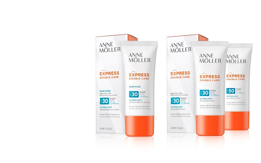 La nueva línea solar con tecnología aceleradora del bronceado de Anne Möller EXPRESS DOUBLE CARE permite broncearse en un tiempo exprés asegurando la protección de la piel.