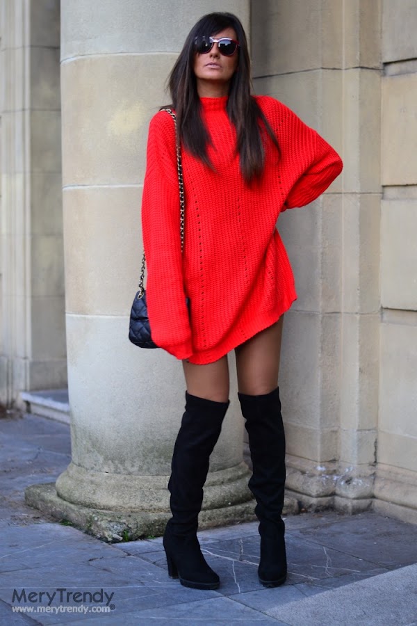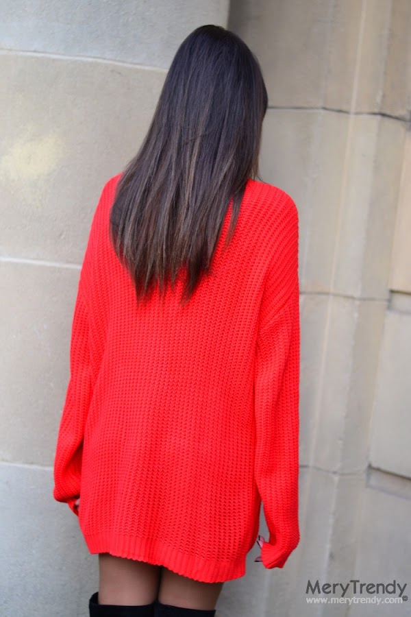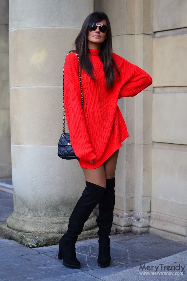 Os confieso que, desde que encargara este jersey "tocho" de punto en rojo con mangas extralargas de Romwe, estaba deseando enseñaros cómo quedaba puesto a modo de vestido pues, a mi juicio, soluciona todos nuestros problemas de cara al espejo. Creo que es perfecto para estos días de entretiempo de los que aún estamos gozando aquí en el norte. Además, ¿no os parece súper amoroso?