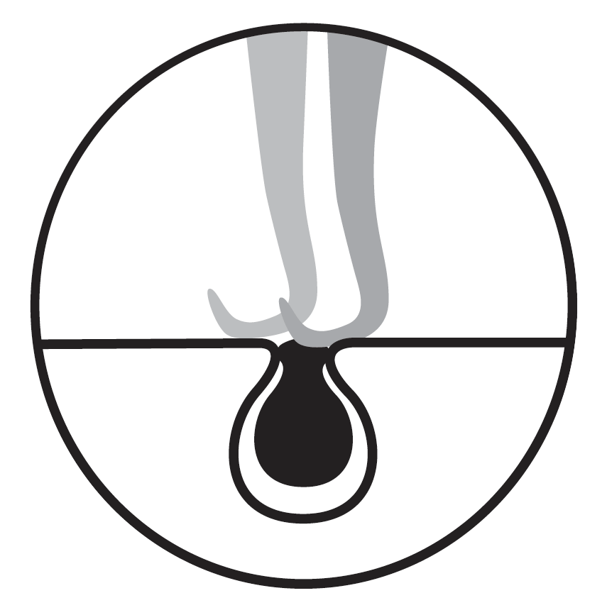 La pinza Slant es una herramienta fabricada en acero inoxidable con punta de gancho aplanado especial para poder coger la espinilla de manera rápida, cómoda, precisa e higiénica.