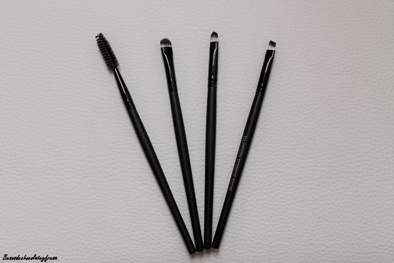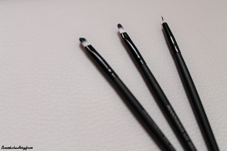 Small Shadow Brush: Para pequeñas cantidades de sombra y para iluminar el ojo cerca del lagrimal, uno de ellos con esponjilla.