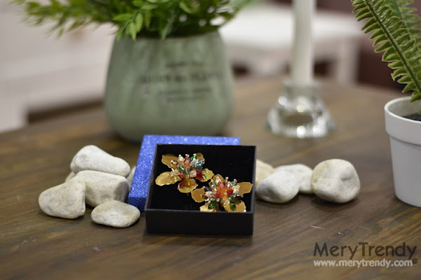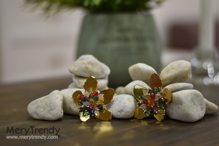 Los segundos, con forma de flor exótica, más barrocos quizás, bañados con rocalla multicolor, también son espectaculares y su tamaño, de 5 cm, considerable (ya sabéis que adoro los pendientes grandes).