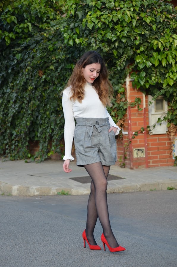 Hoy os muestro este look que a mí personalmente me encanta. Al principio iba a ser un look en blanco y negro pero finalmente decidí darle un toque de color rojo con los tacones y mi nuevo bolso que me compré en Madrid. Combiné estos shorts de Stradivarius con estampado vichy y mi nuevo top de Zaful. Me gustan mucho las formas que hacen sus mangas y también en la zona del cuello.