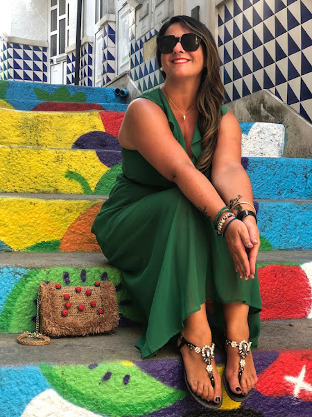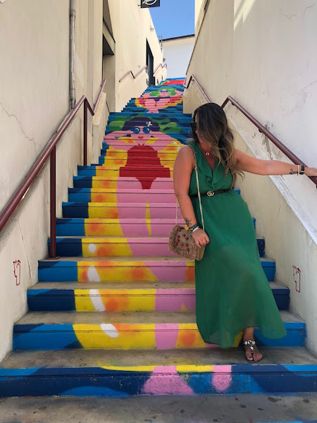 El look elegido fue un vestido verde que compré en Milán y que ya me habéis visto en post anteriores. Lo combiné en este caso con bolso de paja con detalles de flores del mismo material.