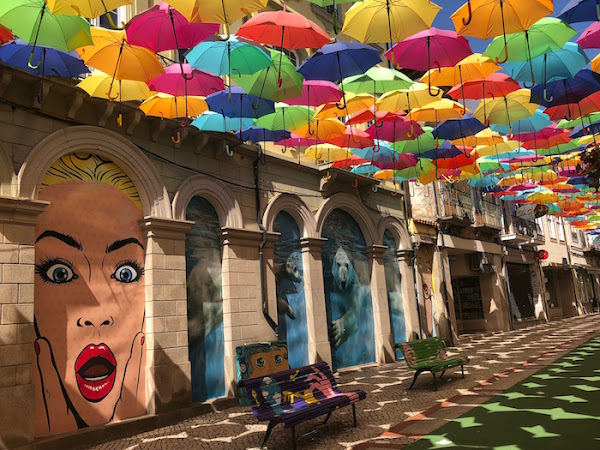 En la oficina de turismo os dan un mapa con todo el arte urbano a conocer del pueblo, entre lo que se encuentra la calle de los paraguas, la de las golondrinas de colores o la de las cintas. Todas ellas preciosas y con mucho mucho color.