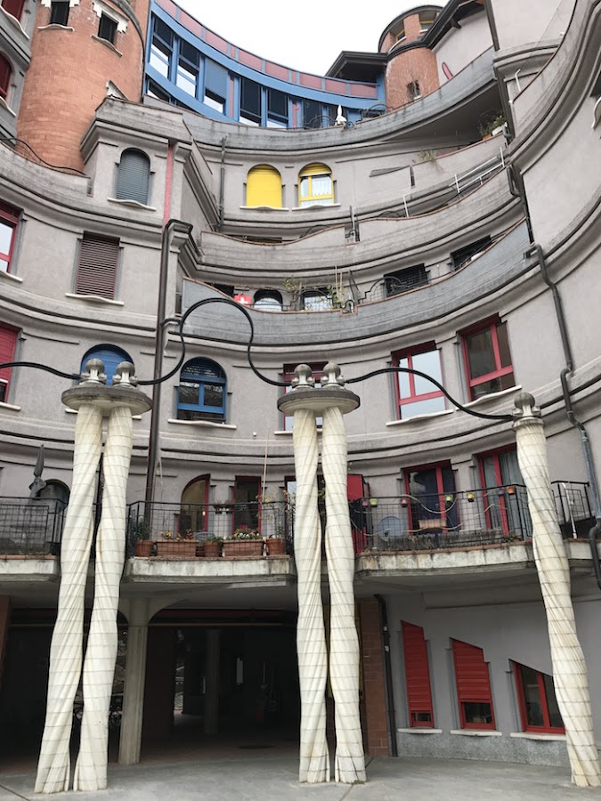 En nuestro tercer día en Ginebra, decidimos ir a conocer el Barrio de Les Grotes y lo que le llaman la urbanización o barrio de los pitufos.