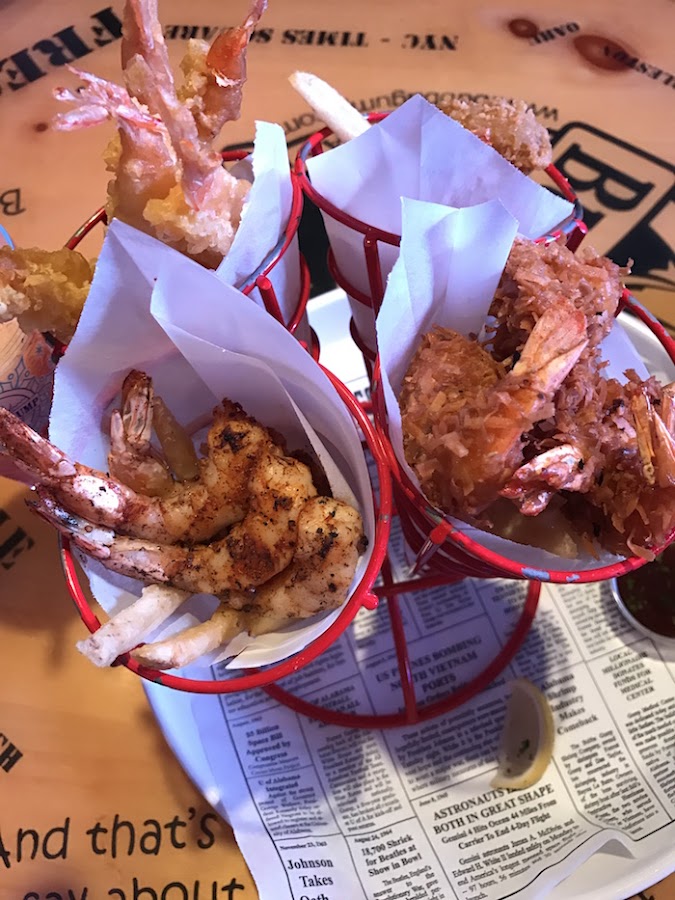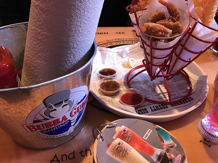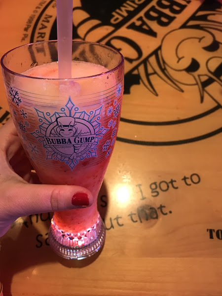 Aprovechamos para comer/cenar en el restaurante Bubba Gump, que he de decir que me encantó. Las gambas estaban todas super buenas y además tomamos un batido súper bueno de fresa y nos dieron un vaso con luz que evidentemente todavía conservo y que sigue funcionando.
