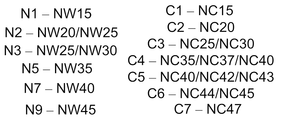 - "N" es subtono rosado y "C" es subtono amarilloTABLA DE EQUIVALENCIAS
