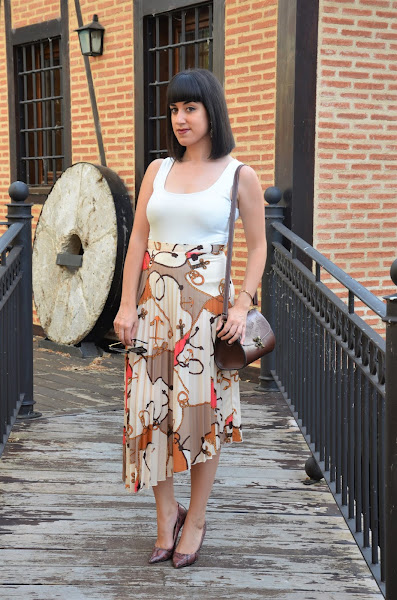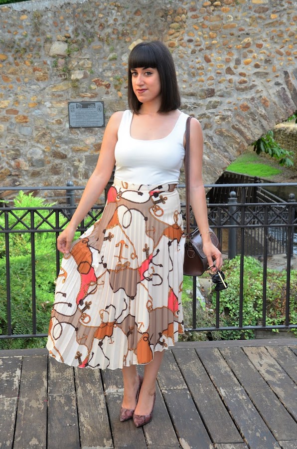 Primeramente, quería enseñaros esta preciosidad de falda de estampado pañuelo y estilo marinero con motivos de anclas. Es de Shein, y fue amor "a primer click" jajaja. Tiene una combinación de colores que me encanta, es plisada y es midi pero con un corte asimétrico que le da ese toque especial.