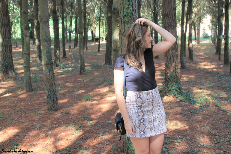 En esta ocasión os enseño mi nueva falda de este estampado tan peculiar en un entorno que bien podría camuflarme con alguna que otra...Con tacto aterciopelada en tonos beige y blancos con el detalle de los botones de madera en la parte delantera.