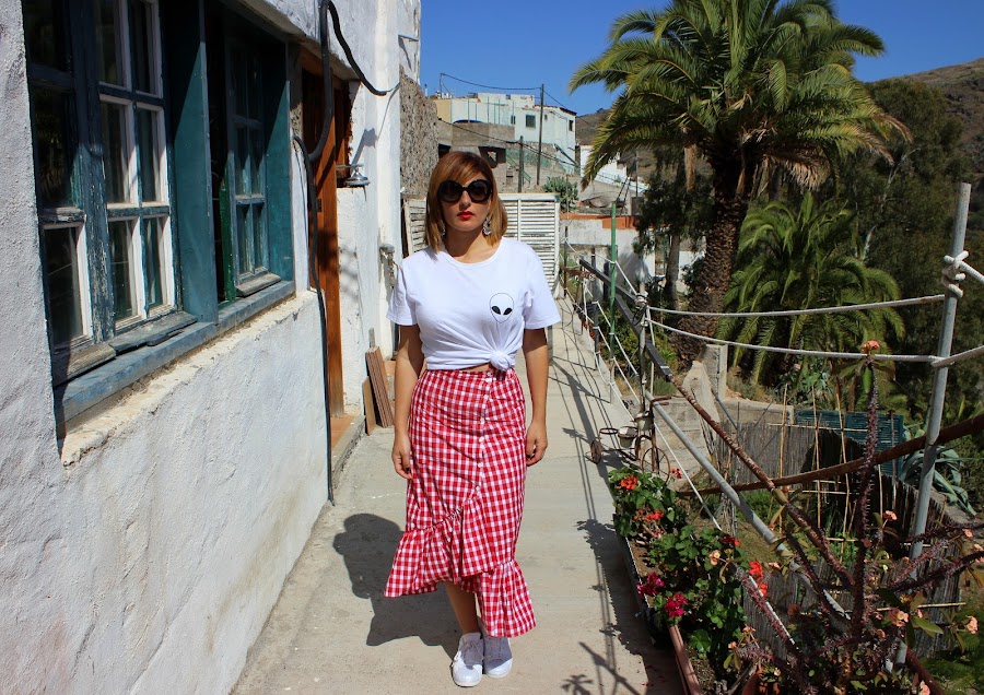 Look cómodo pero sin dejar atrás las tendencias más actuales. Como ya saben el cuadro vichy aparece en infinidad de prendas, por no hablar ya de los volantes que se ha convertido en una verdadera locura.
