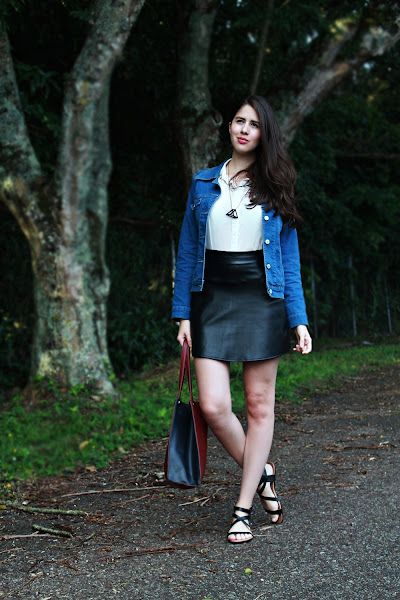 Siempre me ha gustado la combinación de denim + leather (claro falso) y no es la primera en la cual me ven arriesgándome con esto. Esta falda es super versátil, la podemos usar tanto de día (como en esta ocasión) como de noche - PUEDEN VER EL LOOK AQUÍ -