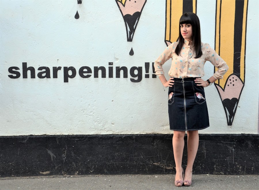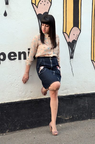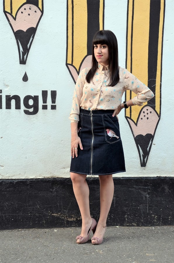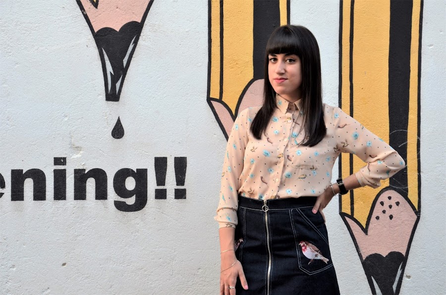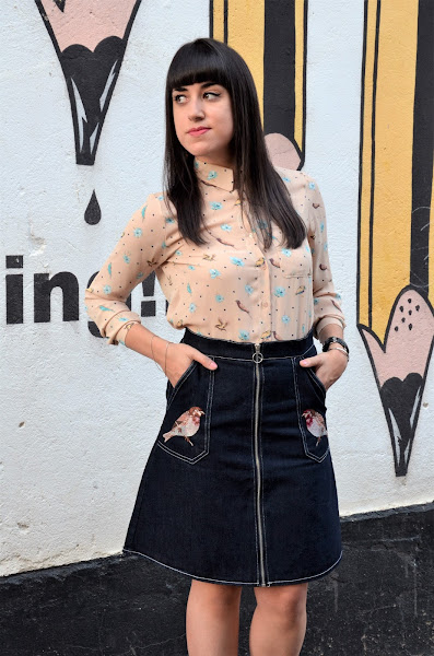 La blusa (de hace ya un par de años) pedía a gritos que me hiciera con esta preciosa y original falda.