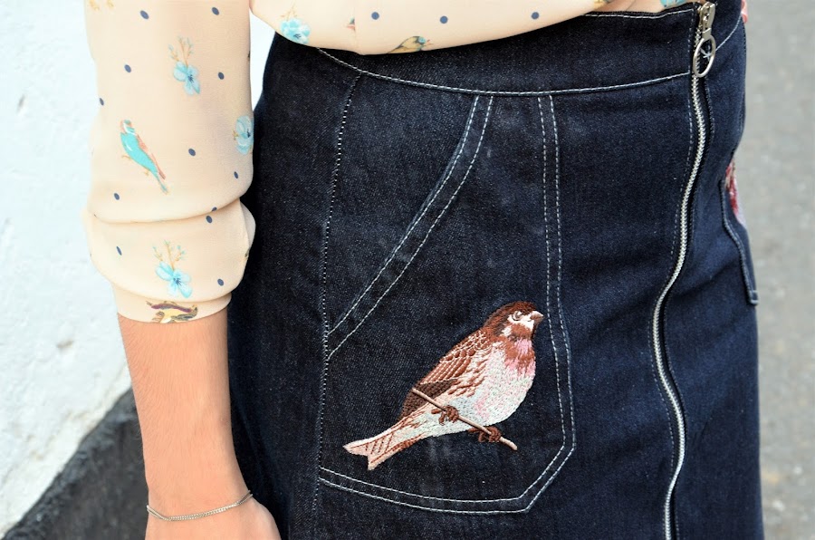 Como veréis en las fotos, se cierra con cremallera delantera y tiene dos pájaros bordados que le dan ese toque naif y romántico. Me encanta la calidad, la verdad que sienta como un guante y los bordados son realmente preciosos. Para que os hagáis una idea, la talla que yo pedí es una L.