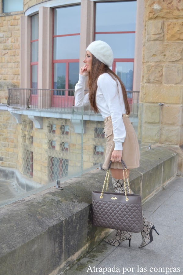 Falda de pana y botas mosqueteras